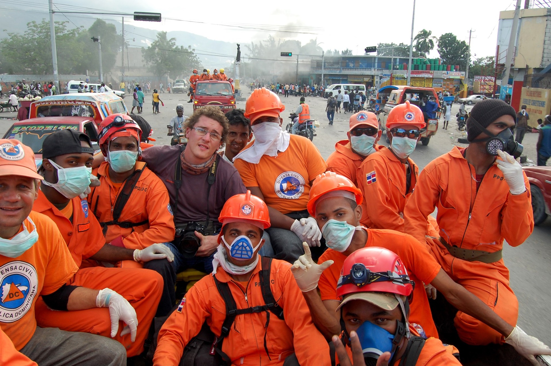 Najprv sme prišli na ďalšiu vojenskú základňu, kde boli vojská OSN a dominikánski záchranári. Bolo ich tam asi 1200. Bola pri letisku, no nikam sa odtiaľ nedalo dostať. Naivne som si myslel, že to bude ako na Sumatre – šofér, tlmočník, budem sa oháňať dolármi a všetko bude fungovať. Ale to na Haiti v tých dňoch nefungovalo. Neskôr boli aj šoféri, aj sprievodcovia. No to až, keď sa všetko trošku utriaslo. Ja som tam bol 56 hodín po zemetrasení a vtedy nefungovalo nič. Uvedomoval som si však, že potrebujem ísť fotiť, pracovať. Vedel som, že tam nejdem na dlho, nemal som ani ako nabíjať, ani ako posielať. Vedel som, že urobím, čo sa dá, vrátim sa do Dominikánskej republiky, pošlem a uvidím, či sa ešte stihnem vrátiť. Zopár novinárov sa na tej základni začalo zgrupovať. Chceli sa dohodnúť s nejakým nákladiakom, no to sa mi nepáčilo. Tridsať novinárov, ktorých budú voziť ako "sightseeing" po meste. Chcel som reálnu skutočnosť. Nie, že zastaneme a počkáme na situáciu. Chcel som, aby situácia išla s nami. Kým som riešil, čo a ako, dominikánski záchranári sa pripravovali na akciu. Prišiel som za nimi a spýtal som sa, či môžem ísť s nimi. Skočil som na korbu. Všetci v oranžových overaloch, gumené rukavice, vrecia na mŕtvoly... Strávil som s nimi dva dni. Bolo to najlepšie, čo som mohol urobiť. Bol som tam jediný fotograf, priamo pri záchranných akciách, videl som, ako vyhrabali živého človeka po piatich dňoch v ruinách, dostali sme sa do oblasti, z ktorej po zemetrasení všetci ušli a my sme boli prví, ktorí sa tam vrátili. Všetko tam bolo tak, ako sa to stalo – mŕtve telá uprostred križovatky. Brutálne veci.